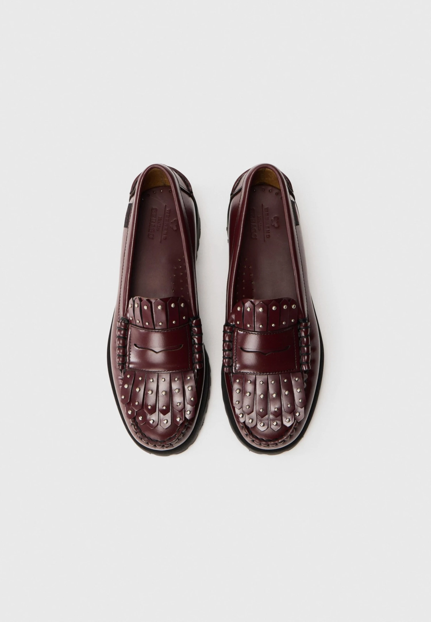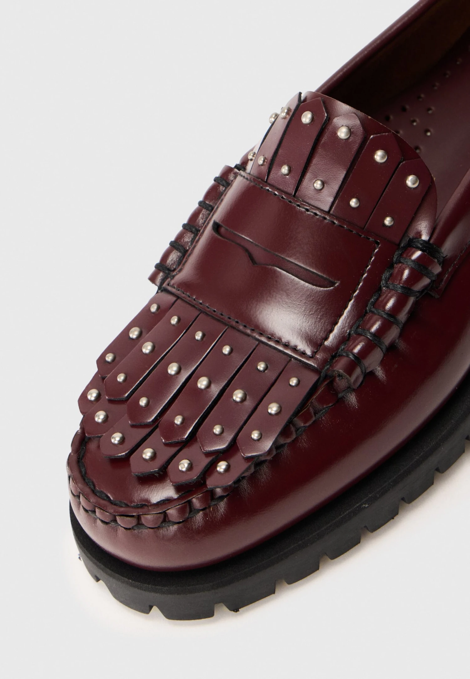 - Details: Decorative studs, moccasin seam, fringing