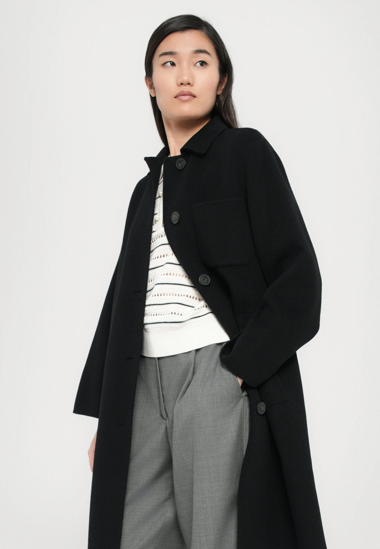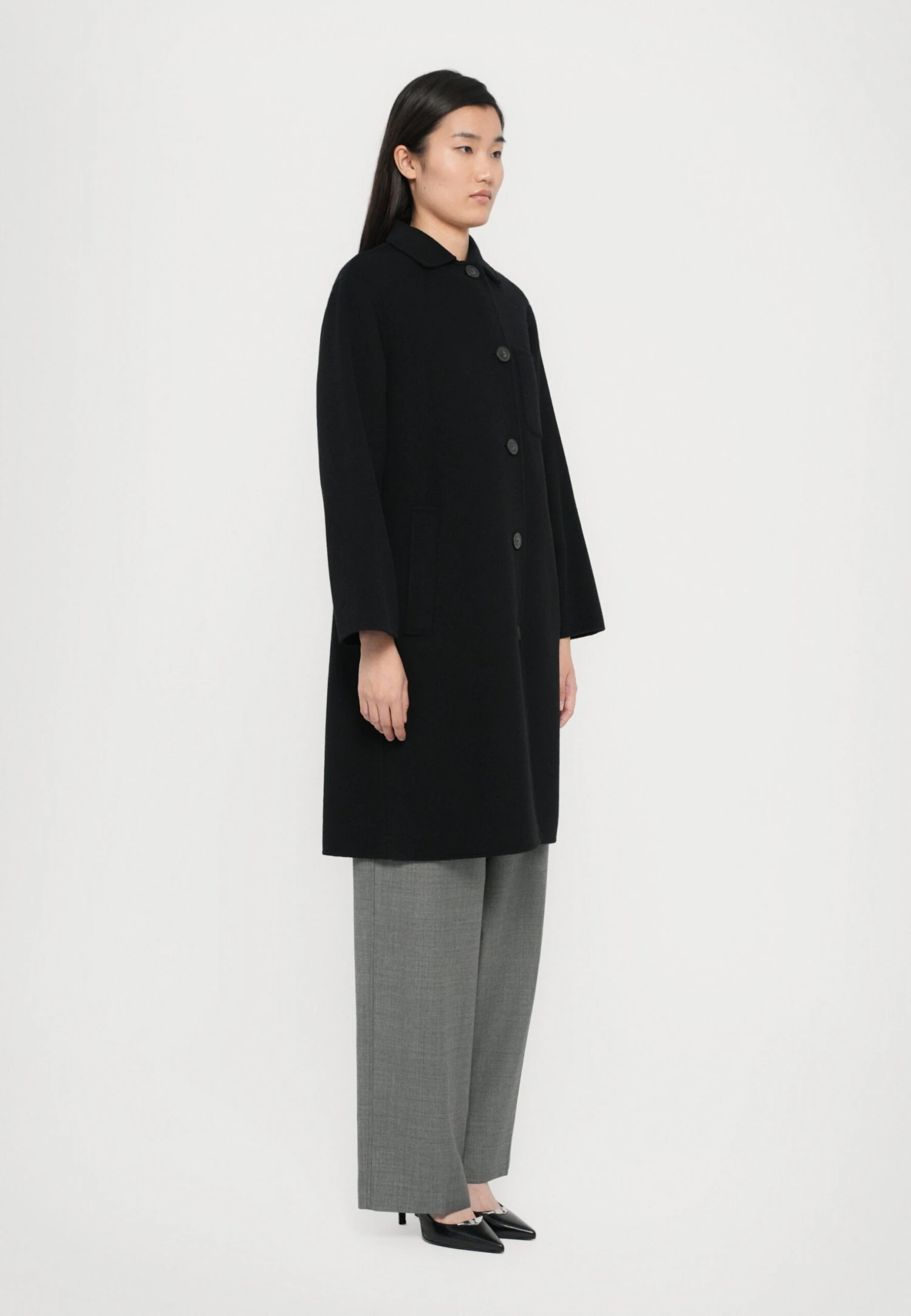 - Pockets: Inseam pockets, chest pocket